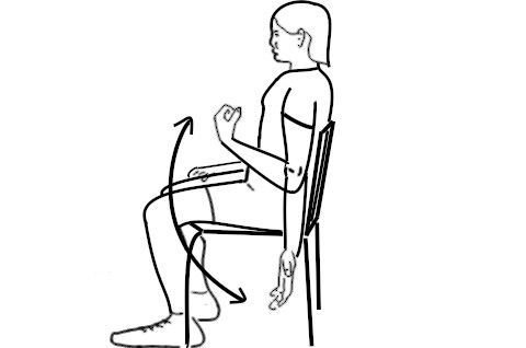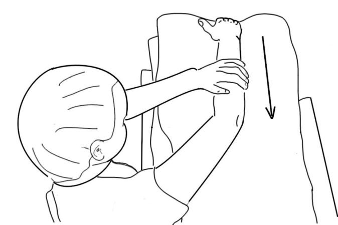 Either in sitting or standing, bend elbow up until discomfort, then lower straight to mild discomfort.