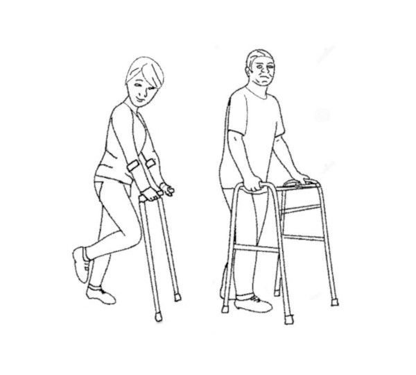 if limping and unable to put weight on the leg, use a walking frame or crutches. SEE GAIT ASSESSMENT When walking with an aid, mimic the pattern of normal walking, even if you are barely touching the effected leg on the floor.