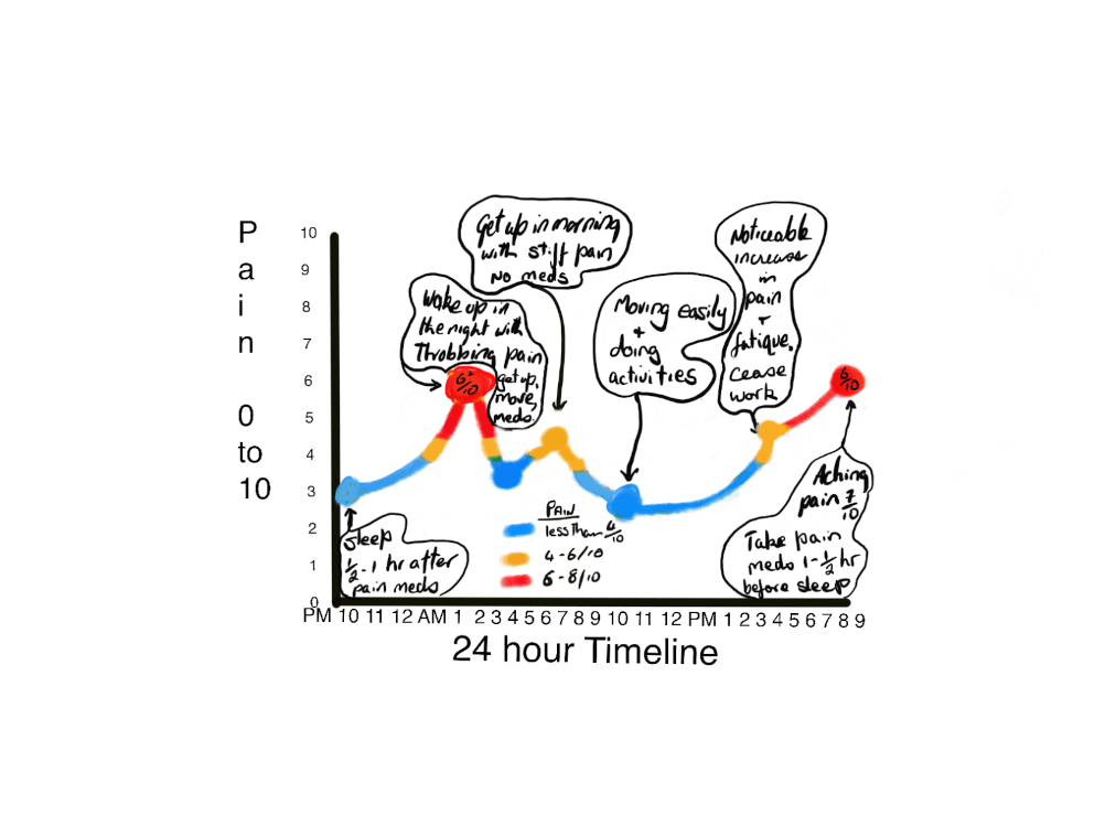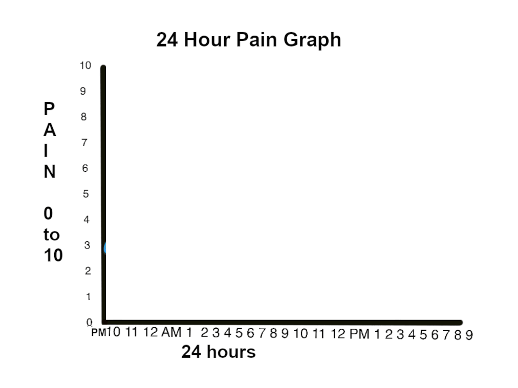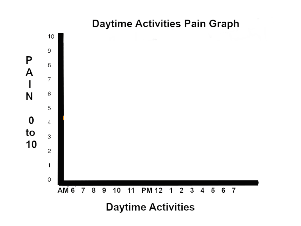 Note on the graphs, when the pain is the worst eg pain wakes you from sleep; when it is least; and any activity or time that worsens the pain.