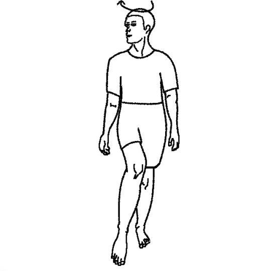 i) Turning head slowly to one side over a few steps. Then turn the other side for a few steps. Repeat 20 x daily for a few days or until easy.