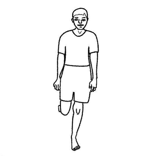 Stand on an even surface, on the injury effected leg, lifting the non effected leg, for as long as you can. When you loose balance and need to bring the other foot down for balance, note the time you were on one foot. Stand on the non-effected leg for 10 seconds.