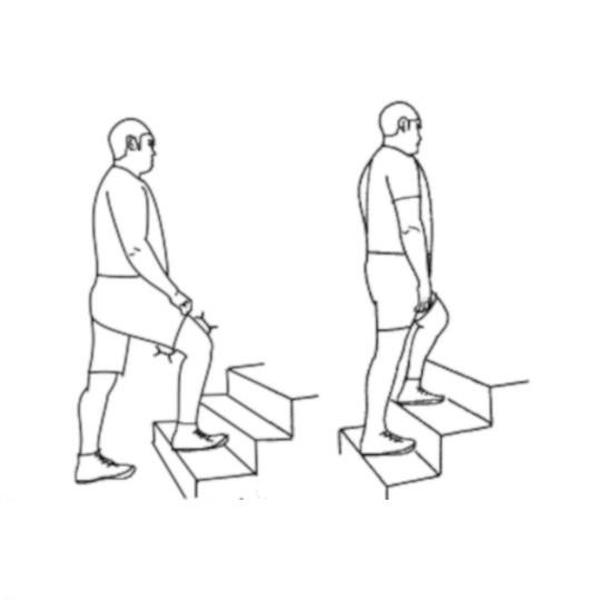 If your work includes walking up and down stairs routinely, only return to this work when you are able to walk up and downstairs with mild stiffness and pain no more than 4/10 for 30 minutes.